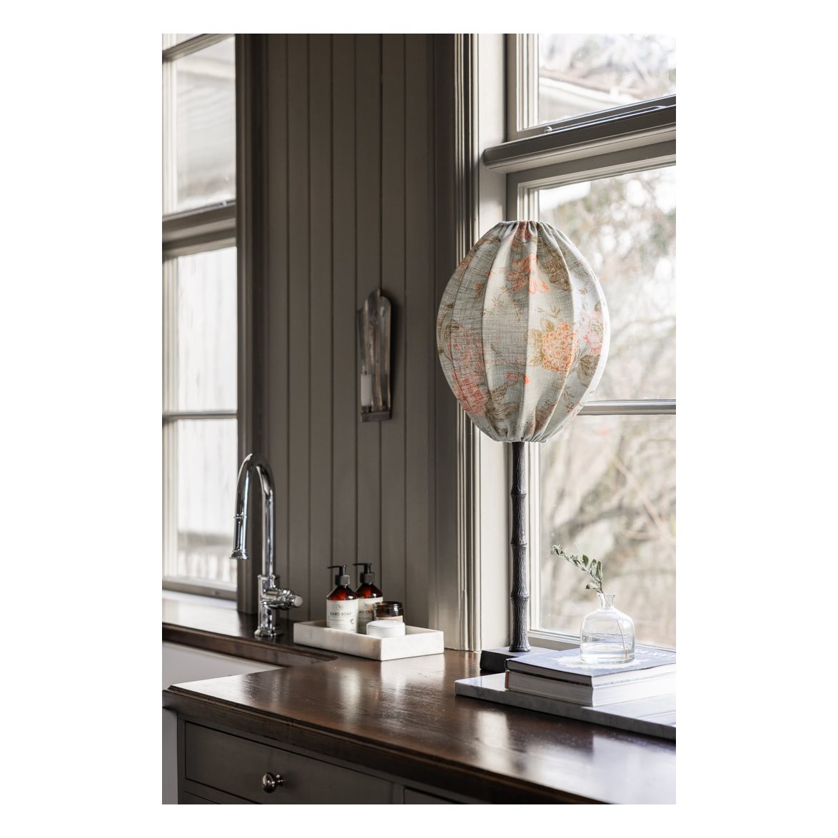 Vändbar lampskärm, kan användas både som taklampskärm och som lampskärm på bord eller golvlampa. Här i en klassisk blommig kretong. För att få ut maximalt ljus ur skärmen välj en ljuskälla med högre watt. Lampskärmen finns i flera olika tyger och färger