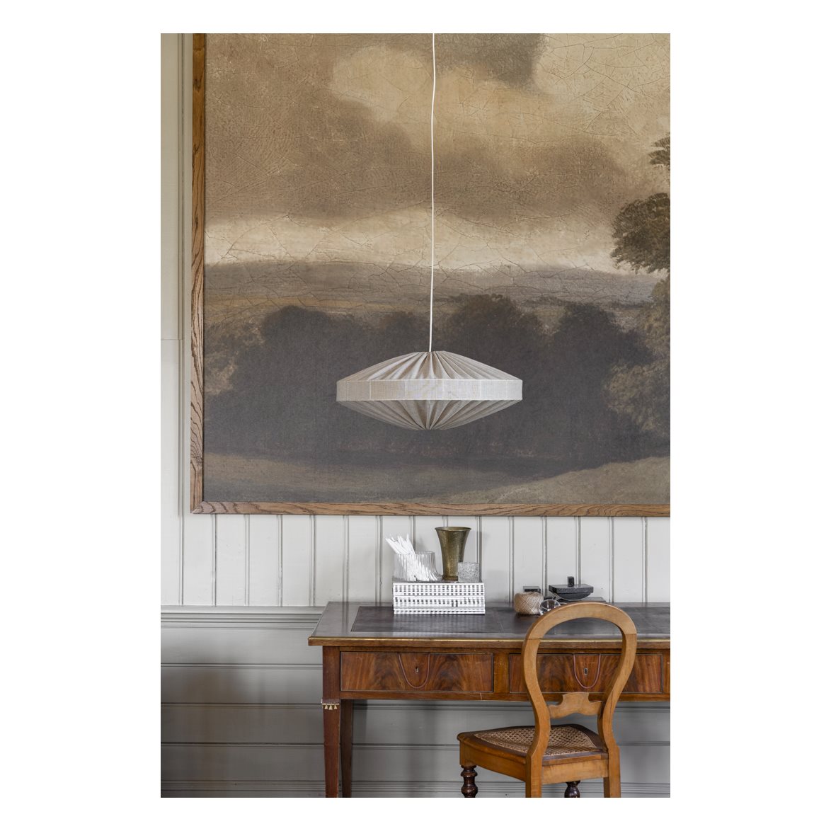 Lampskärmen är här klädd i ett tunnt tyg av linnekvalitet. Alba kan användas som takpendel, golvlampa eller plafond beroende på vilket fäste du kombinerar den med. För att förstärka färgerna i linnetyget kan man med fördel använda en ljuskälla som är 3000K eller mer. För ett varmare sken, använd en ljuskälla med 2700K eller lägre. Välj bland olika tyger och ett flertal färger.