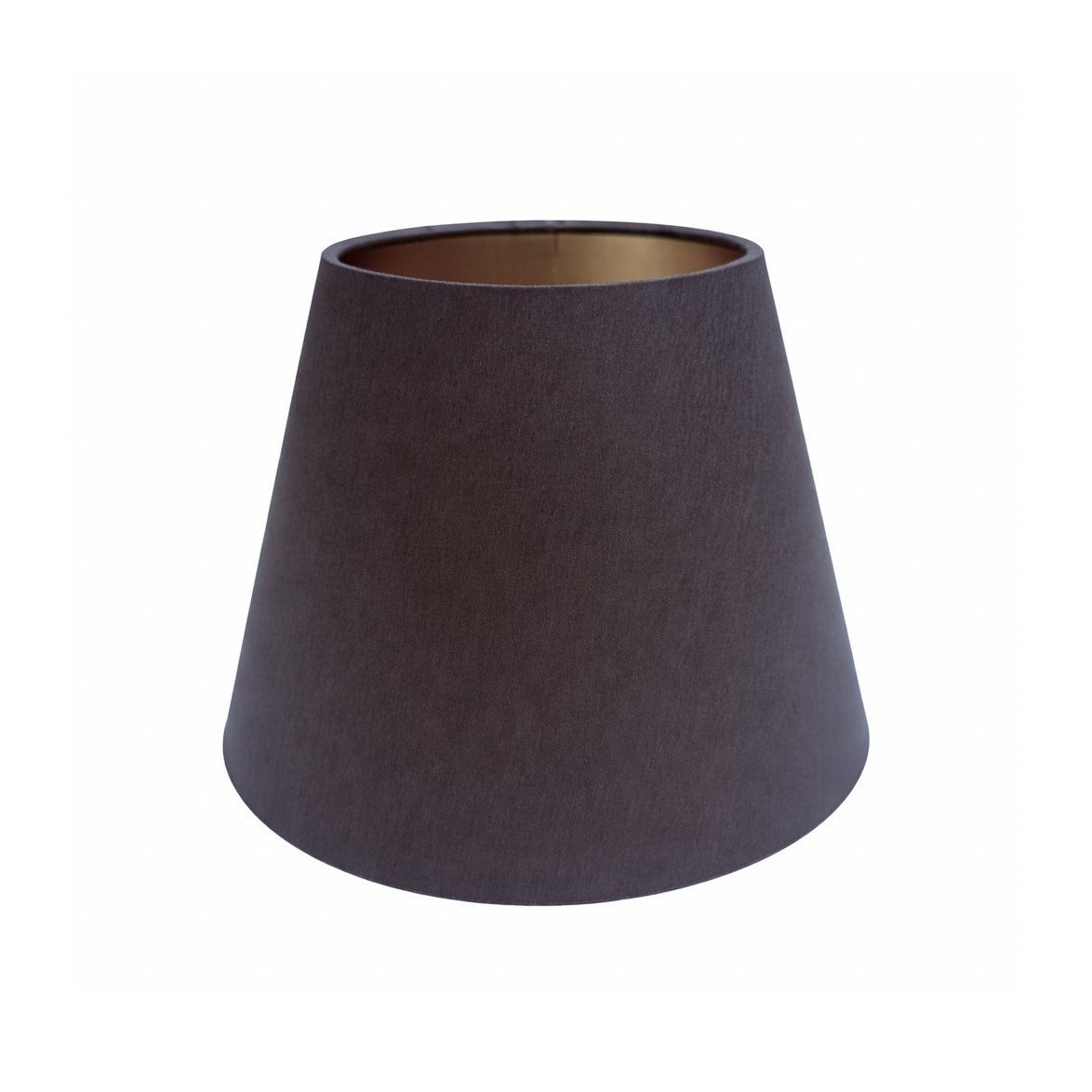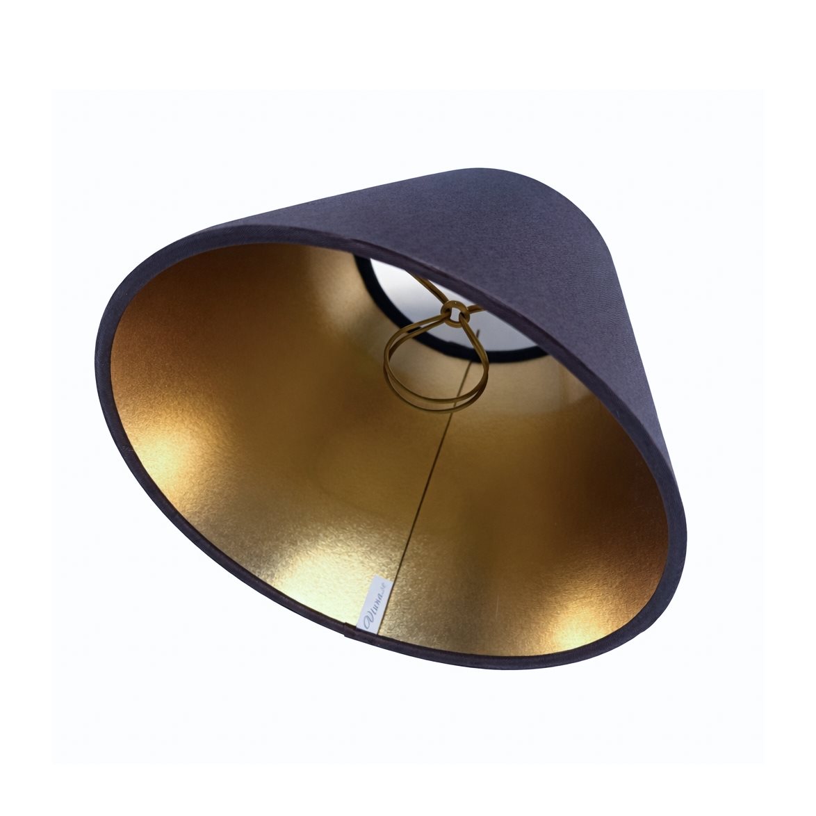 Denna lampskärm är designad för att leverera maximal visuell effekt med ett kontrollerat, sofistikerat uttryck. Den mörkgrå textilutsidan skapar ett elegant och stabilt intryck som förankrar lampan i rummet, medan den guldfärgade insidan adderar värme och lyfter ljusupplevelsen till en premium-nivå.