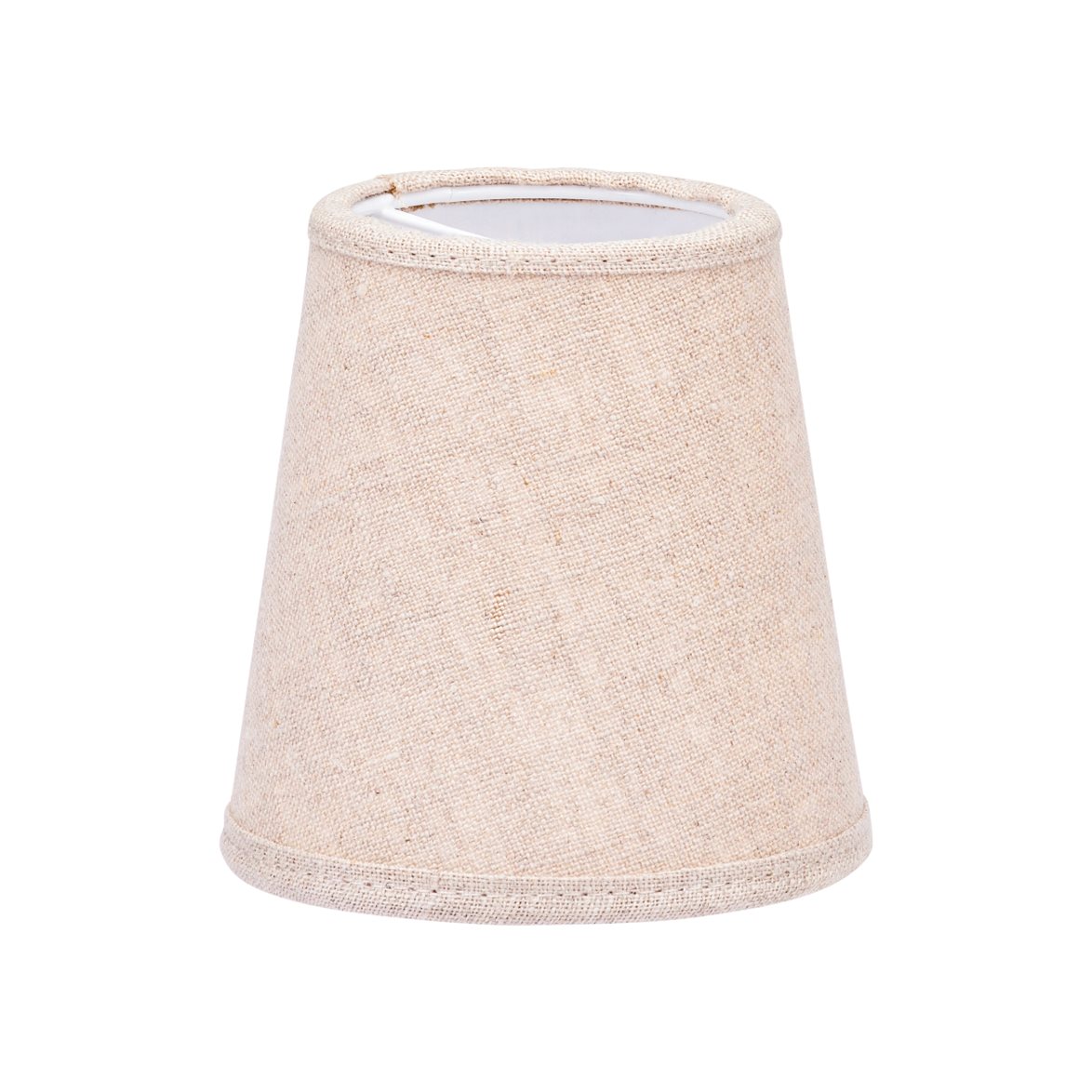 Queen rund lampskärm natur i linnetyg med ett klofäste. Linet gör att tyget får en vackert naturlig struktur och skapar ett lyxigt blickfång i din inredning. Skärmen har en vit insida och kantband i samma tyg som skärmen. Denna modell har ett klofäste för kronljus och fästs på ljuskällan, och passar till takkronor samt mindre lampfötter. Ljuskälla ingår ej. Tyget är certifierad enligt STANDARD 100 by OEKO-TEX®. Certifieringen garanterar att produkten är testad och fri från ämnen som kan vara skadliga för hälsan och miljön. Lampskärmen har måtten Diameter nedtill: 10cm, Höjd: 10cm.