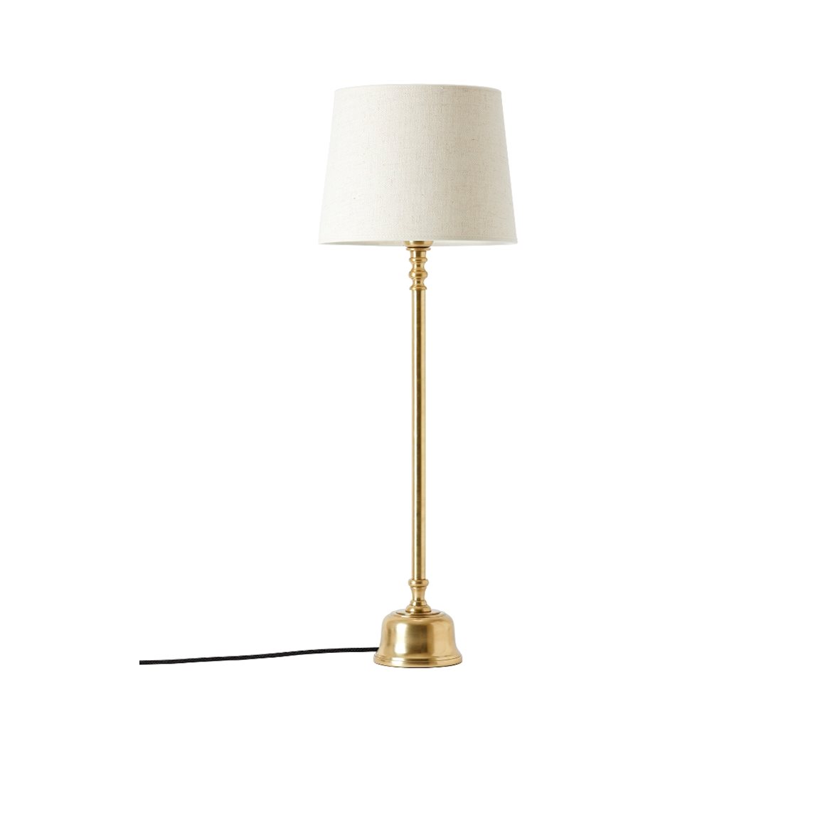 Lampfoten Qvist 402 i mässing (60 cm) har en markerad, rund bas och en slank hals med klassiska detaljer. Den högre modellen blir en tydlig inredningsdetalj som ger karaktär åt rummet. Perfekt att kombinera med stora textilskärmar för ett balanserat och stilfullt uttryck.